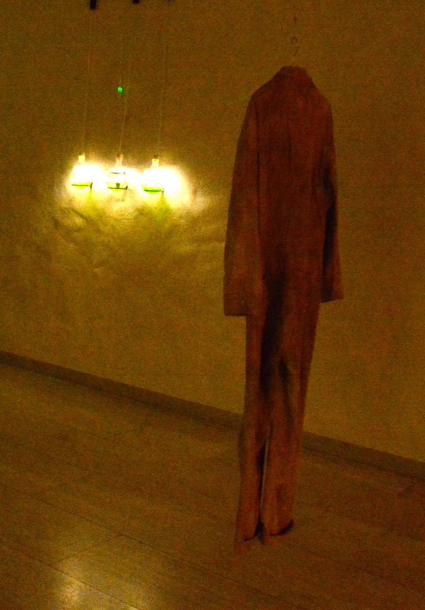 Det hänger några glaskolvar i taket. Nån sa (jag förstod det inte av mig själv) att de var kopplade till en dator. I kärlet några mikroorganismer. När temperatur och luftfukt blev densamma som på en plats på jorden visades en markering på en stor digital karta på väggen. Och mycket riktigt, vid båda mina besök lyste en lampa på kartan. På olika platser. Det var bildmässigt, både mystiskt och tekniskt elegant. Men var det meddelanden från non-humans? Det blev jag inte klok på. Tanken var väl att jag skulle bli klokare, inte att jag skulle känna mig dum.