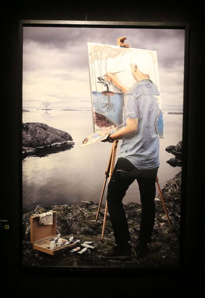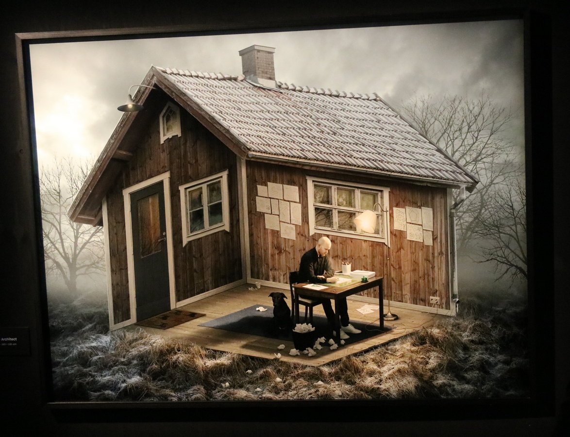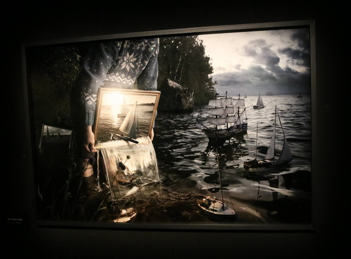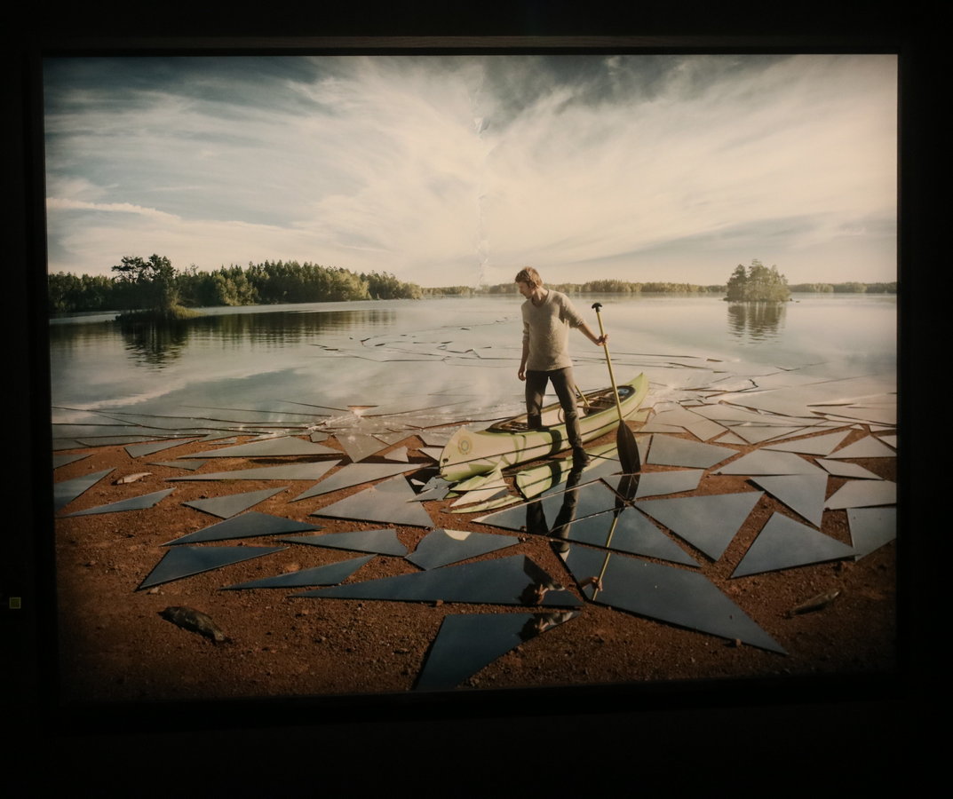 Erik Johanssons intrikat surrealistiska bilder väcker många tankar. Jag tänker på en typ av målningar Rene Magrittes gjorde. Till exempel bilden på målarens staffli blir ett med landskapet som är hans motiv (The human Condition 1935). Den har Erik Johansson gjort en egen twist på.