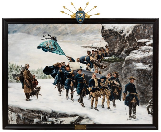 En favorit är målningen Från Sveaborg till Fredriksten. Karl XIV Johan sitter i en pose lånad från en målning av Louis Èdouard Rioult. Han visar hud med tatueringar med antirojalistsikt tema. Bilden är fylld av detaljer från ett officiellt porträtt av kungen med vissa betydelsebärande uppdateringar.