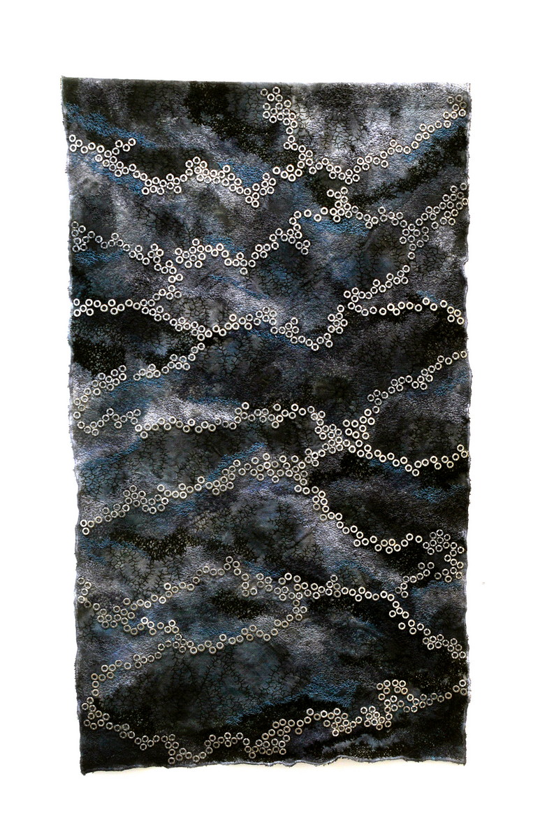 – Textila verk som rör sönderfall, minnen, materia, rester, processer i natur och människa. Spillror av tid. Vi sliter isär och faller ihop. Fogar samman, syr ihop, döljer hål. Tiden, flödet, samband. – – –