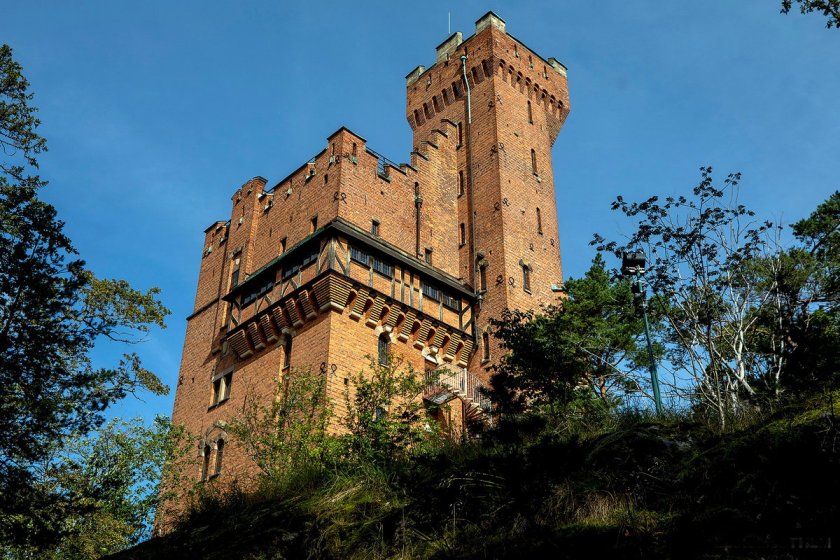 Märklig upplevelse att åter efter snart femtio år stiga in i det gamla riddarborgsliknande tegeltornet från 1906 i Stocksund, Cedergrenska tornet kallet efter byggherren, jägmästaren Albert Gotthard Nestor Cedergren (1849-1921).