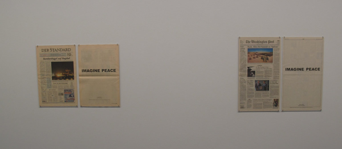 Väggarna var fyllda med tidningsklipp från Yoko Onos och John Lennons olika happenings för fred. Jag får den bestämda uppfattningen att Yoko Ono var hjärnan bakom.