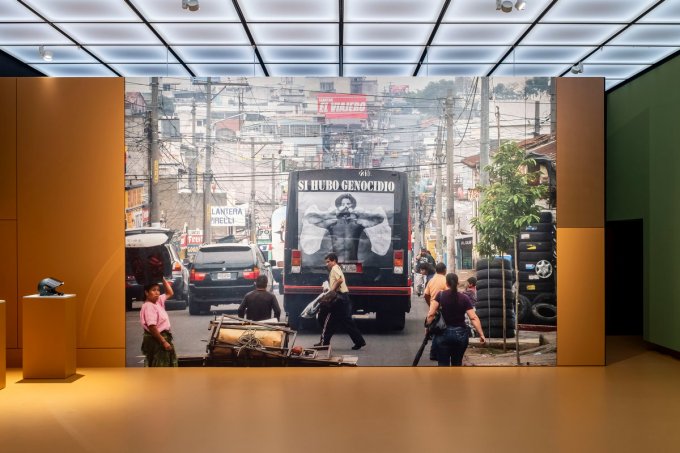 Fotografen Daniel Hernandez-Salazar från Guatemala monterade sin bild Si hubo genocido (=det var ett folkmord)på baksidan av en buss för att påminna om en diktator som orsakade inbördeskriget i Guatemala 1960-1996.