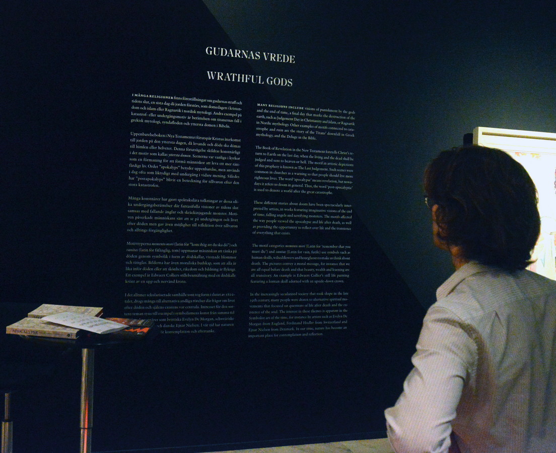 Utställningen som blev förra årets stora utställning i konstmuseet, berör skiftande sätt att förhålla sig till undergången. Projektet tar avstamp i såväl konstvetenskap och idéhistoria som religionshistoria och medievetenskap.
