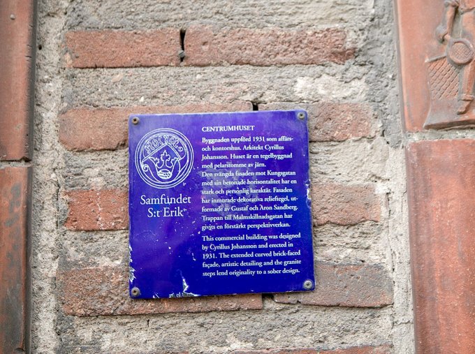 För tio år sedan, 2015, skrev jag i DN om bildhuggarbröderna Gustaf (1876–1958) och Aron (1873–1959) Sandbergs fina små lerreliefer på Centrumhusets fasad i hörnet av Sveavägen och Kungsgatan.