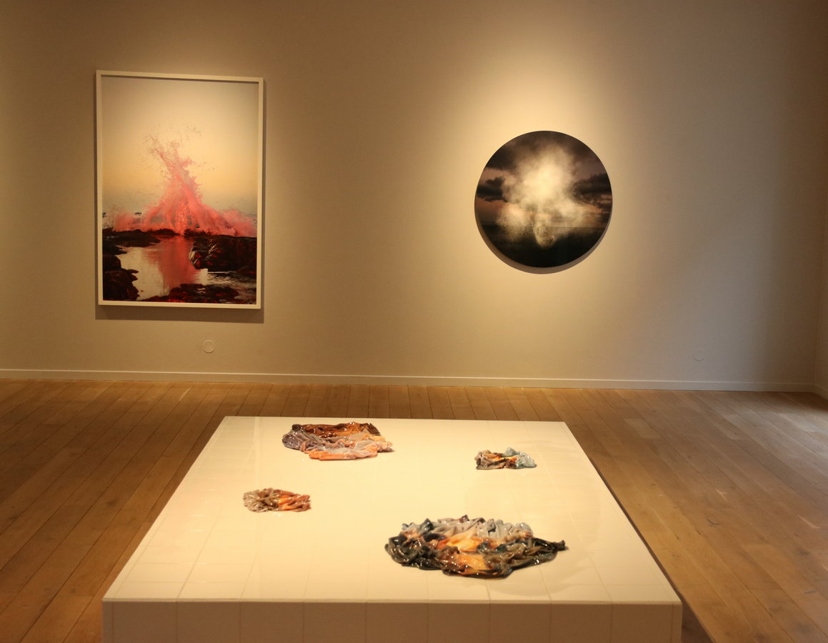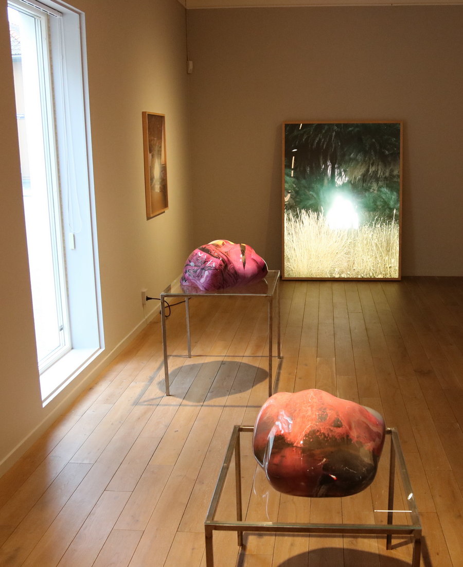 Inka& Niclas flyttar in sina naturbilder i olika bildtekniker, form och uttryck. Här visas några fotografiska skulpturer. På stenformers ytor flyter växtformer bakom högglans. Och på ett podium täckt med vita kakelplattor ligger vad som ser ut som mönstrade skrynklade handdukar med fotograferade och manipulerade växtmönster. Men de är glänsande hårda av plast.