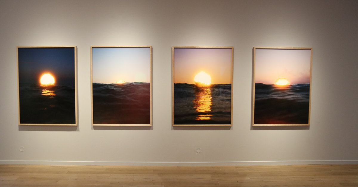 En serie här visar liksom den stora skärmen ett klassiskt naturmotiv. Solnedgång vid havet. Åtminstone ser det vid första anblicken ut så. Men det som ser så naturligt ut är även här konst-gjort. Det som ser ut som den glödande solen får vi veta är ett klot täckt med ett starkt reflekterande material som gör att kamerabilden ser det som ett likt solen flammande klot. Kameran ser nåt annat än ögat. Men skenet bedrar alltså. En känner sig som Bob Dylan sjunger: ”All he believes are his eyes, but his eyes are telling him lies.”