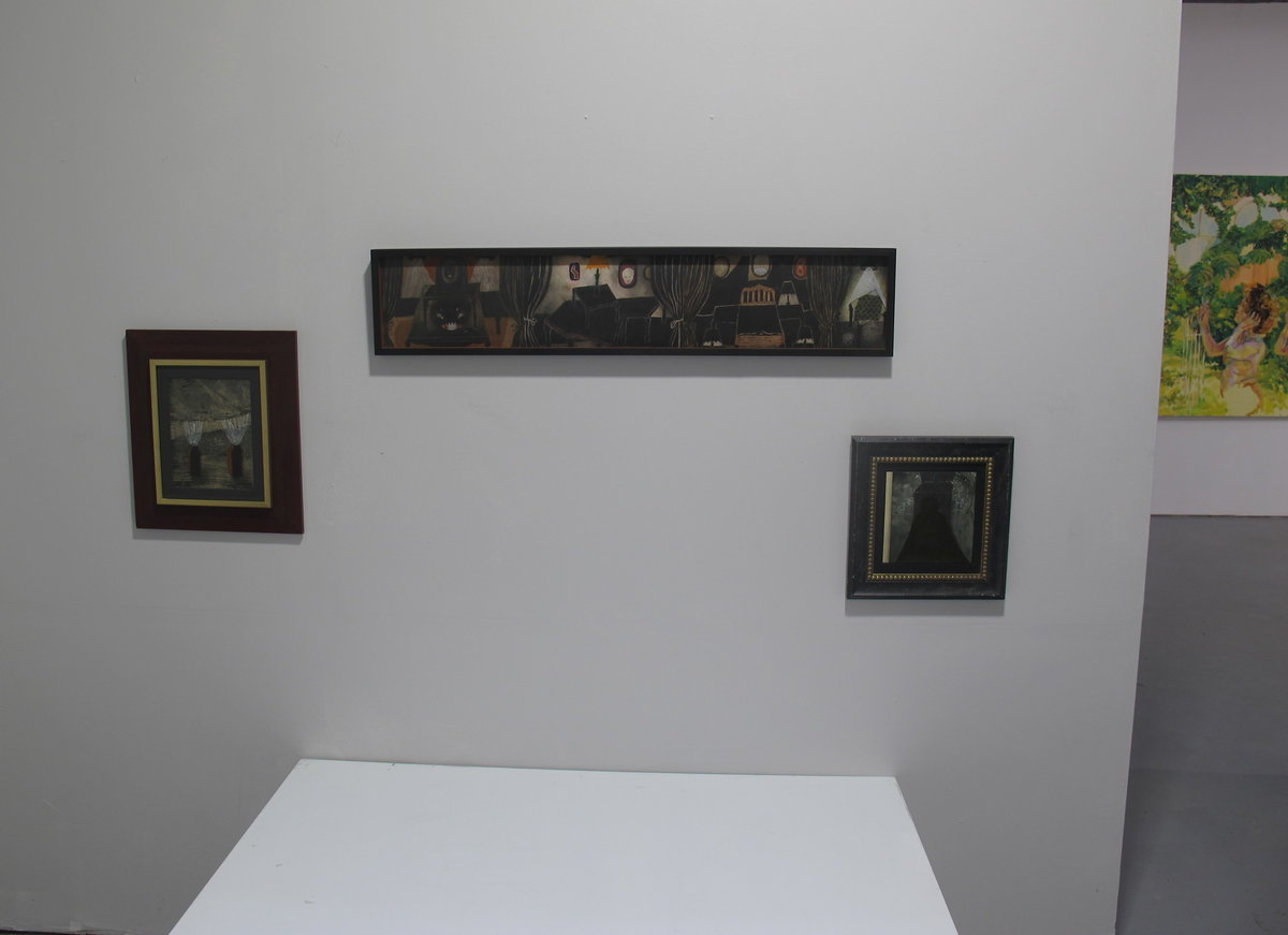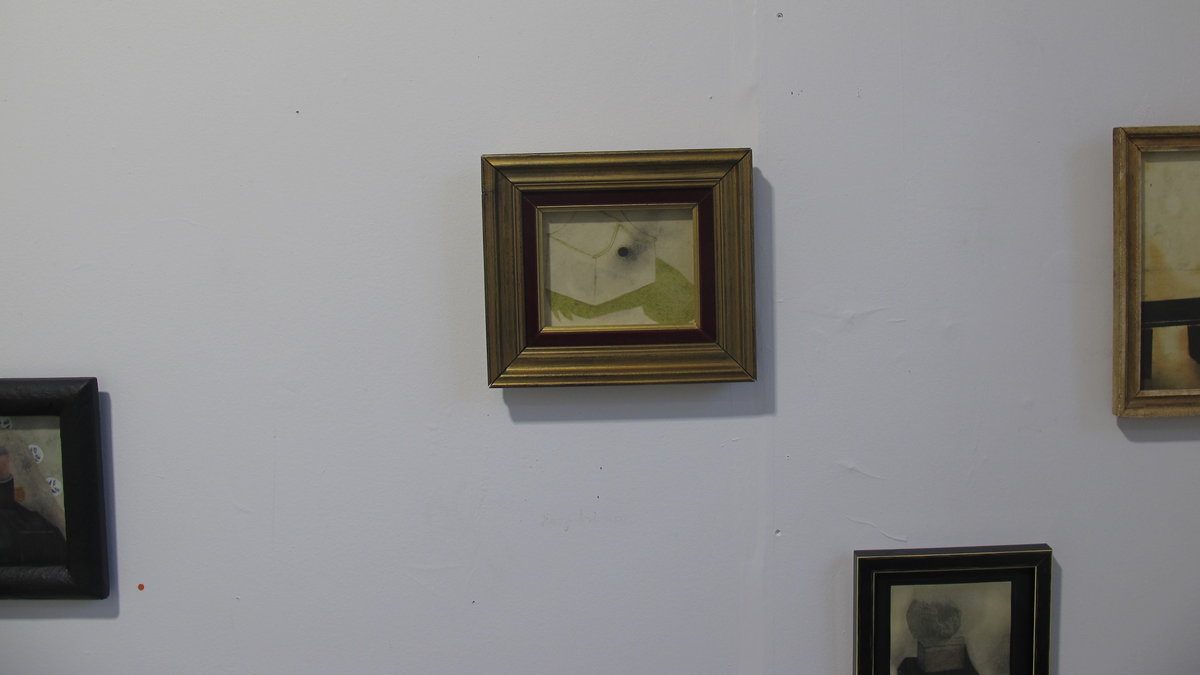 Det är målningar som ser gammeldags ut. De är målade i ett föreställande manér i en återhållen färgskala. Motiven är märkliga. I en av dem ser en vad som ser ut som en skalle med huden avdragen. En spetsig strut går in i den och i dess yttre ände finns en ögonliknande öppning med ett snöre hängande ut som om man skulle kunna dra ut nåt därinnifrån. Perspektiven både bildligt och bokstavligt är annorlunda och så vill väl Örtemark att den här konsten ska vara. Man känner igen föremål men de tycks vilja visa en annan sida och ges andra sammanhang.