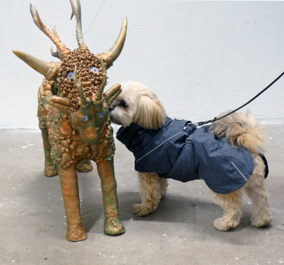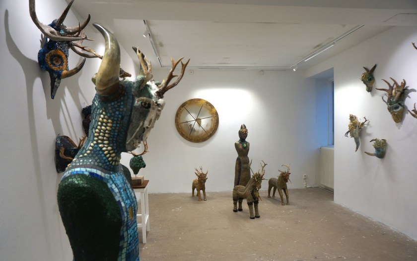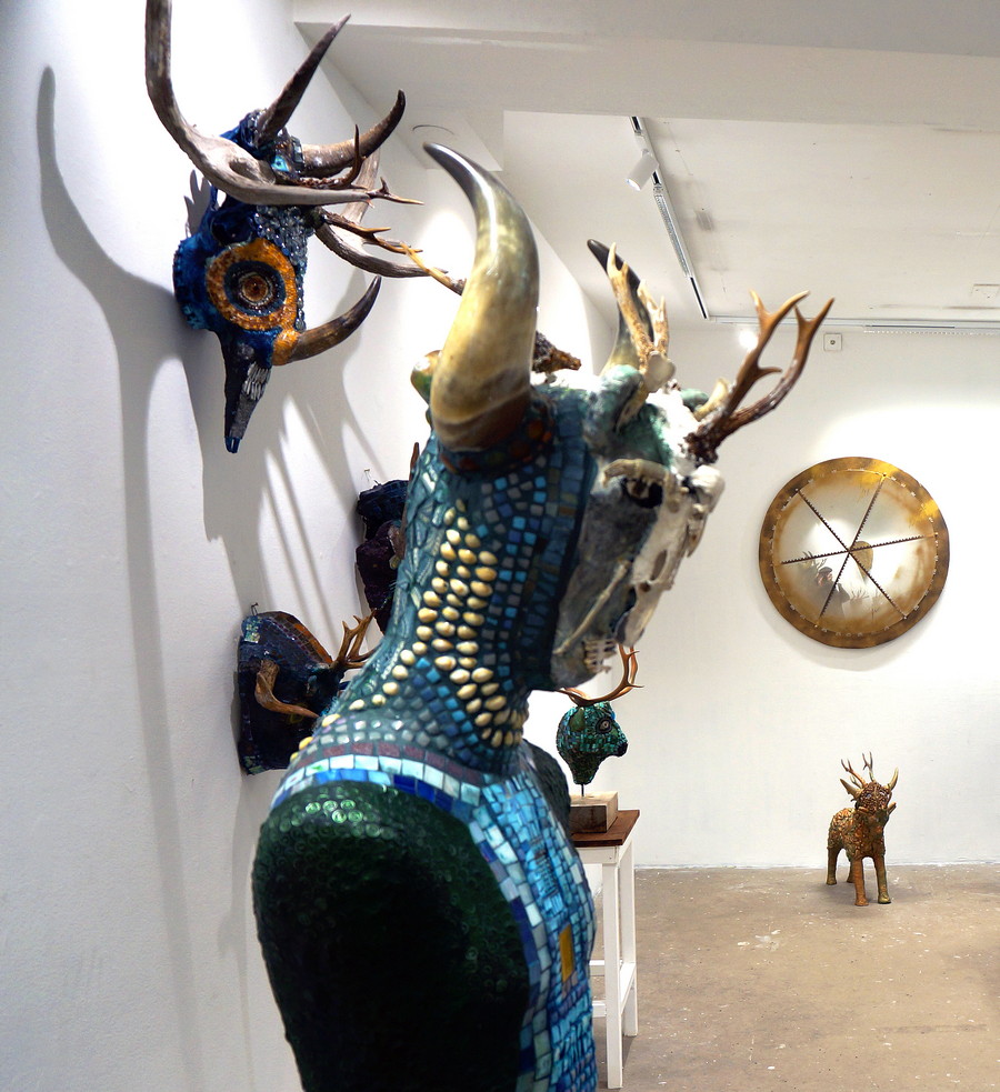 Under arbetets gång har det även vuxit fram stora skulpturer föreställande olika ”varelser och väsen”. I Maskerna och skulpturerna har jag blandat olika djurkranier, benbitar, horn, mosaik, lera och gips.
