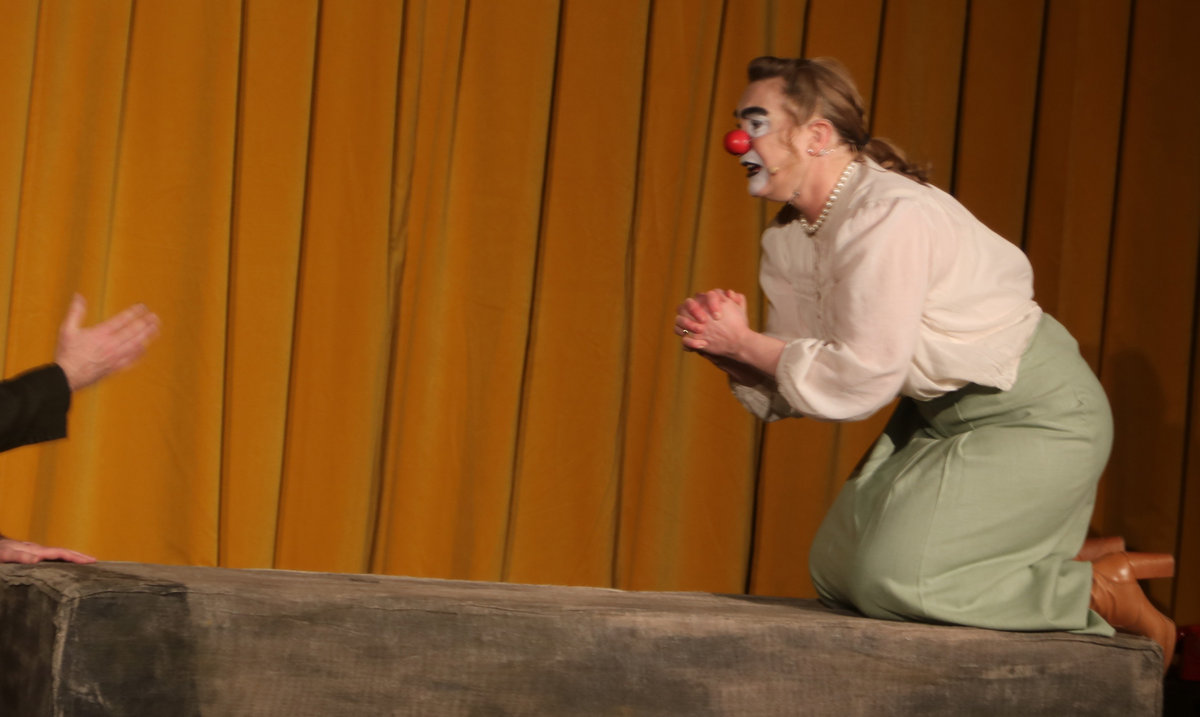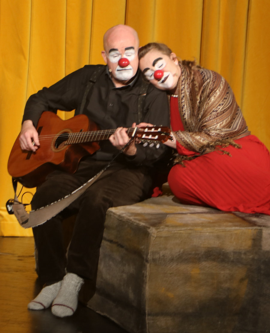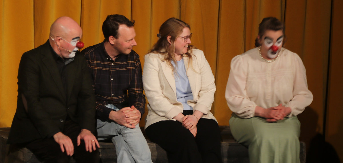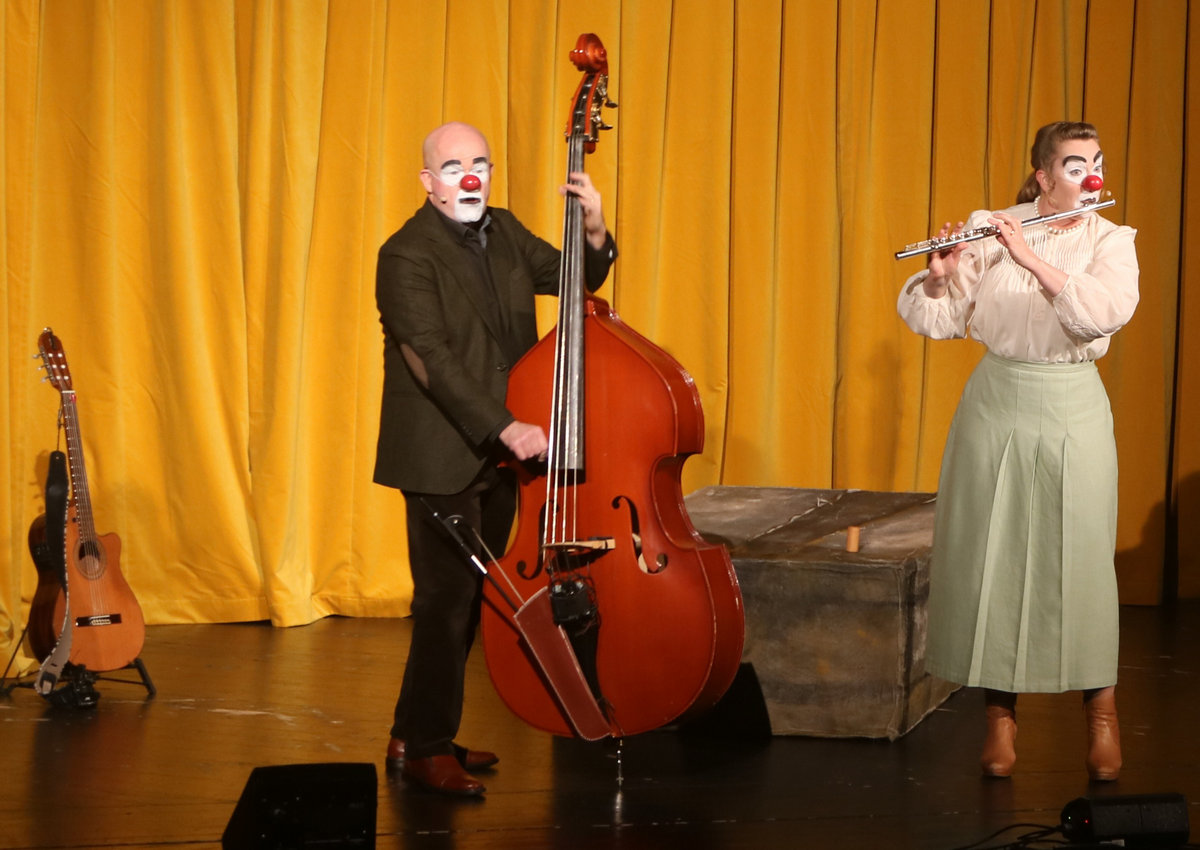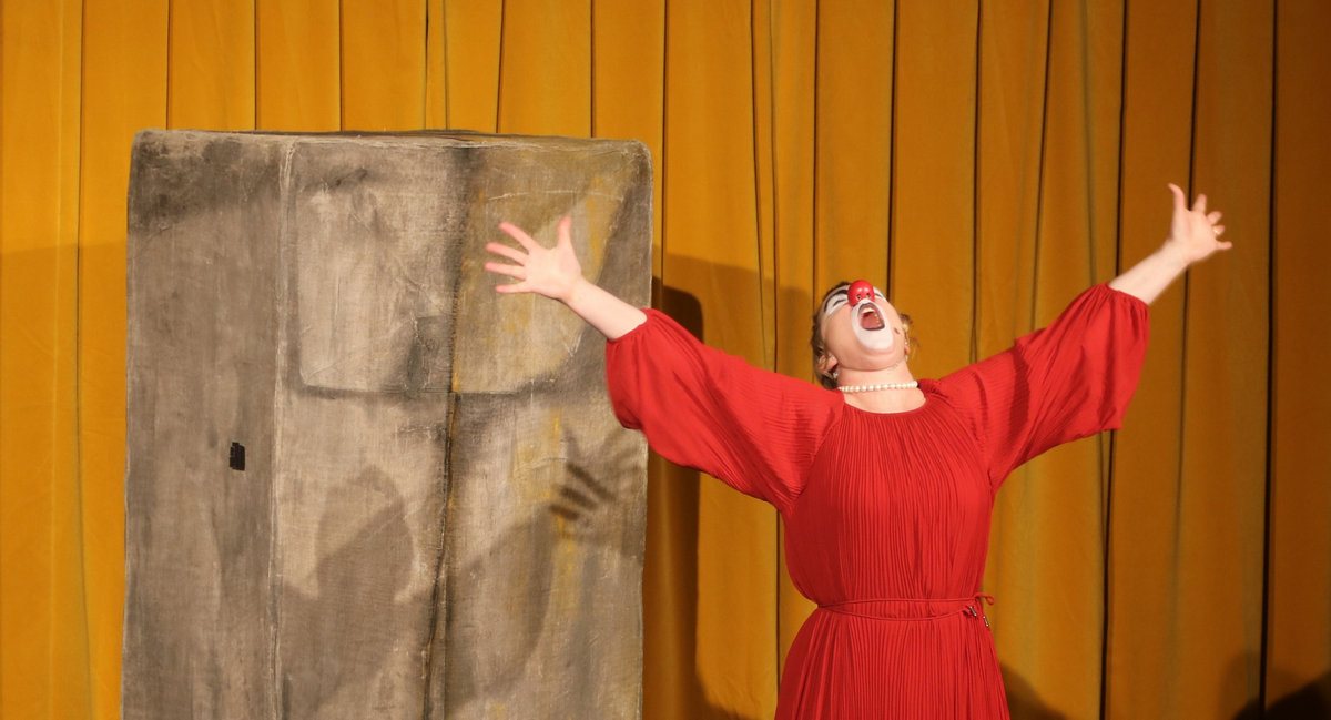 Oavsett vilket stycke de spelar känner vi igen dem direkt. De har alltid vitsminkade ansikten och röda clownnäsor. Och speciella röster och diktion. Deras specialitet är att på ett respektlöst sätt fullt av insiktsfull respekt ge sina tolkningar av klassiker av de största som Shakespeare, Tjechov, Strindberg. Nu hade turen kommit till Ingmar Bergmans Scener ur ett äktenskap. Och de gav den dysterkvistens berättelse en välbehövlig boost. Bergmans filmer är ofta pretentiösa men i Schtunkarnas bearbetning tas de ner på jorden och fås därigenom att lägga betydelser tydligare i dagen.