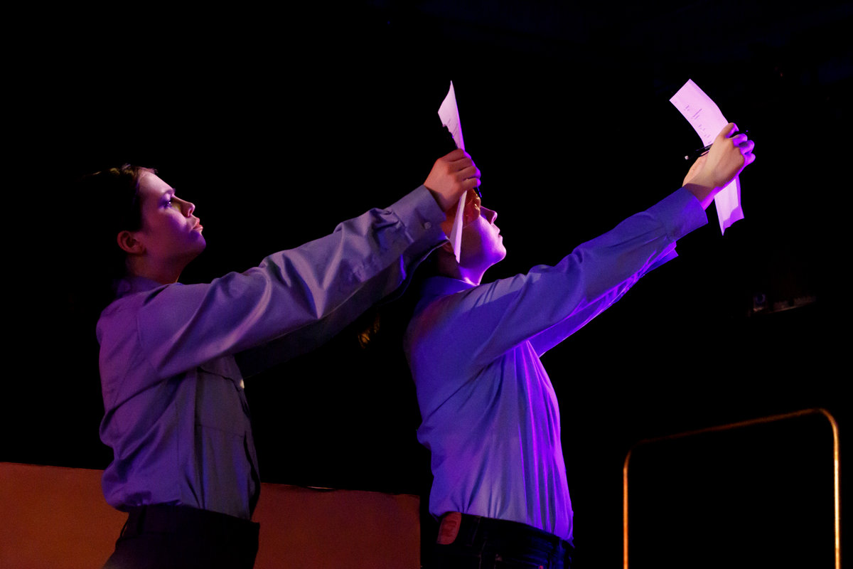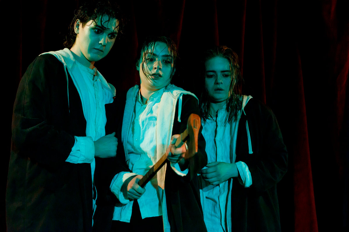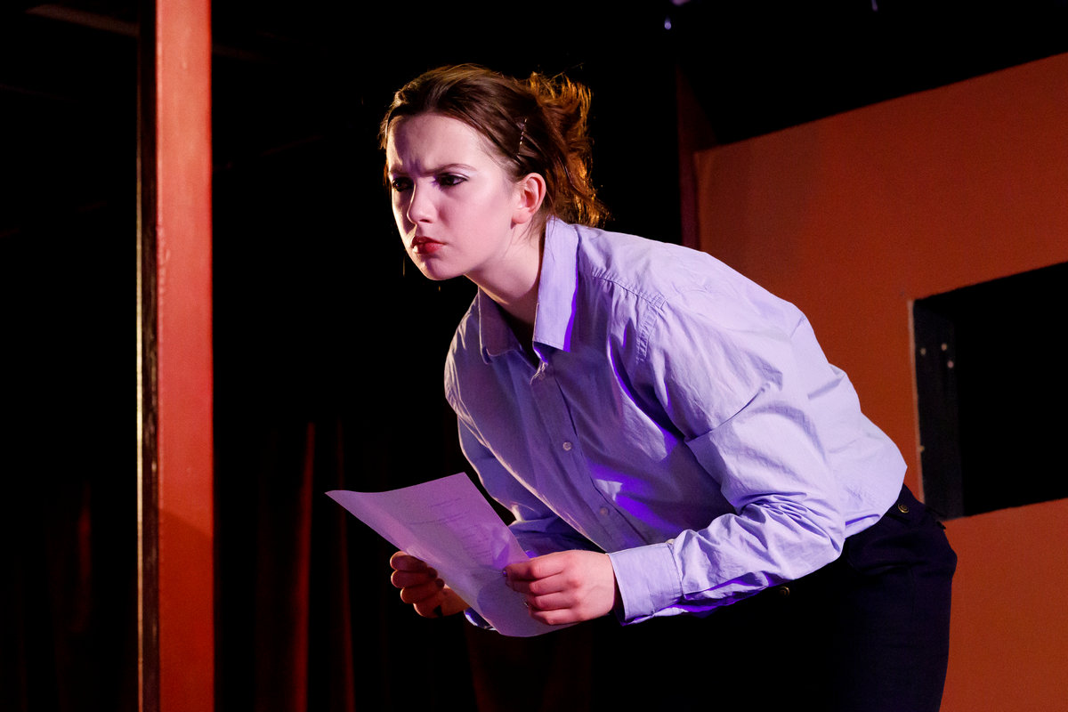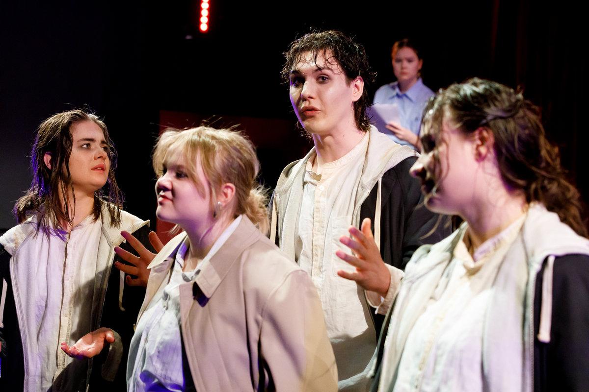 Eleverna tar sig an många svåra roller. Det fungerar genomgående bra. Det är strongt att de tillsammans fått det komplexa skeendet att fungera så fint. Bra enskild karaktäristik av rollerna och trovärdigt samspel. Rollerna får var sin karaktär och både det inre och yttre skeendet gestaltas på ett drabbande och fördjupande sätt. Det finns inga döda punkter och spänningen skruvas obönhörligt åt.